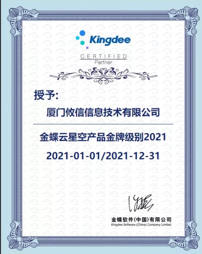 | 發(fā)證機(jī)構(gòu): | 金蝶(軟件)中國(guó)有限公司 | 發(fā)證時(shí)間 : | 2021-01-01 |