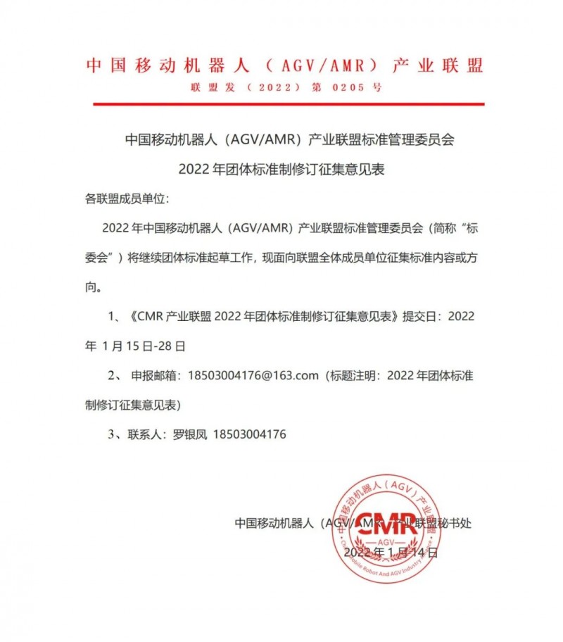 CMR產(chǎn)業(yè)聯(lián)盟2022年團(tuán)體標(biāo)準(zhǔn)制修訂意見征集公告