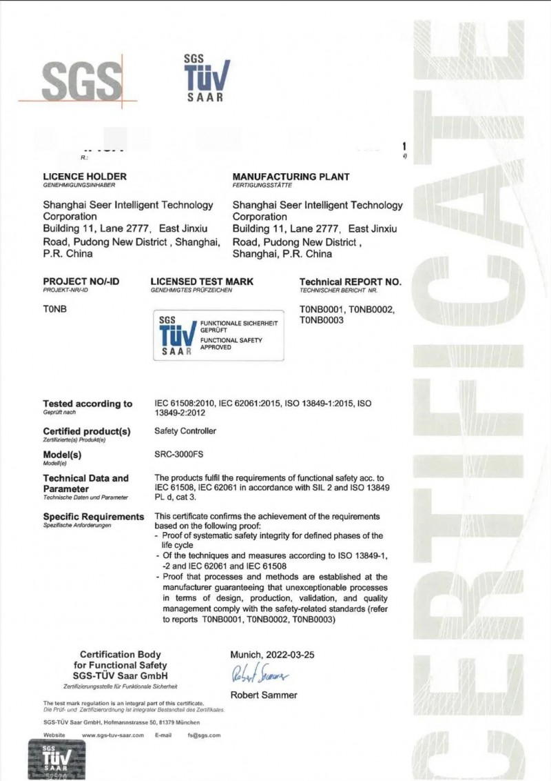 仙工智能 SRC-3000FS 由仙工智能自主研發(fā)的安全型 AMR 控制器,通過了 SGS TUV SAAR 功能安全認(rèn)證。SRC-3000FS 集激光SLAM導(dǎo)航、功能安全于一體的,是目前唯一一個(gè)通過該認(rèn)證的控制器產(chǎn)品。