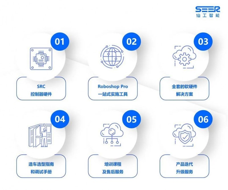 為了幫助客戶更輕松地實(shí)現(xiàn)打造 AMR 的需求,仙工能為客戶提供全套方案支持,方案中不僅是一臺(tái) SRC 控制器,而且是涵蓋硬件、軟件、造車技術(shù)方案、選型及調(diào)試手冊(cè)、培訓(xùn)及服務(wù)等全套技術(shù)服務(wù),消除一切造 AMR 的障礙。