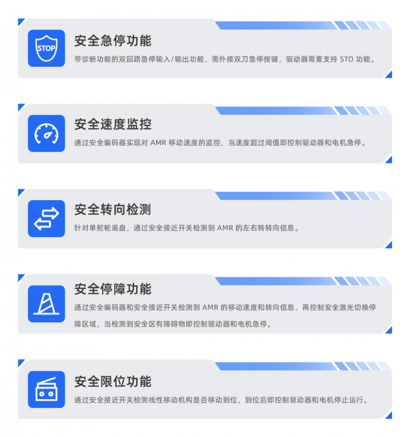 這就意味著通過 SRC-3000FS,無需安全“PLC”,即可搭建滿足 ISO 3691-4 國(guó)際安全標(biāo)準(zhǔn)的 AMR!由 SRC- 3000FS 打造的 AMR 性能強(qiáng)悍的同時(shí)空間更加緊湊,這不僅降低造 AMR 的難度,還能為客戶提供更多樣的造車選擇,為國(guó)產(chǎn) AMR 提供強(qiáng)有力的技術(shù)支持,促進(jìn) AMR 行業(yè)繁榮發(fā)展!
