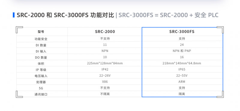 那么 SRC-3000FS 相比于 SRC-2000 的升級(jí)點(diǎn)在哪里呢?看這張圖就能快速理解:SRC-3000FS = SRC-2000 + 安全“PLC”。