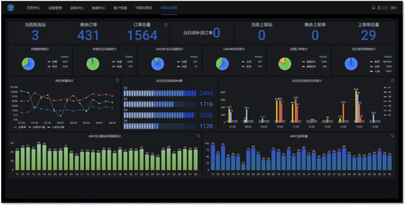 任務(wù)狀態(tài)可視化、設(shè)備運行狀態(tài)可視化、庫位使用情況可視化。