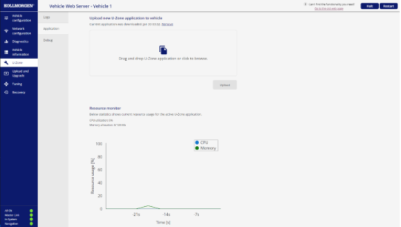portant; overflow-wrap: break-word !important;">02 我們還在新的車輛網(wǎng)頁界面里添加了U-Zone菜單,以便您上傳和監(jiān)控使用U-Zone的應用程序。您也可以通過資源監(jiān)視器查看U-Zone應用程序的CPU功率和內(nèi)存使用情況。