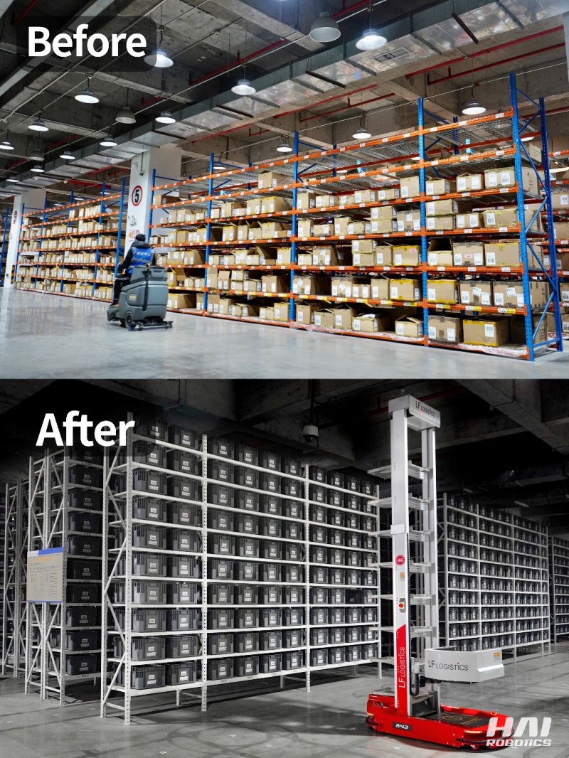 針對利豐供應(yīng)鏈倉庫存儲(chǔ)密度低,存儲(chǔ)壓力大的痛點(diǎn),海柔創(chuàng)新部署HAIPICK A42箱式倉儲(chǔ)機(jī)器人搭配立體貨架的組合存儲(chǔ)方式,其中立體貨架高度可高達(dá)4.3米。此外,由于ACR的產(chǎn)品設(shè)計(jì)理念是貨箱到人,對比潛伏式移動(dòng)機(jī)器人機(jī)身設(shè)計(jì)更窄,使得貨架之間的巷道面積得以進(jìn)一步縮小,從而提升存儲(chǔ)密度。改造后的前海