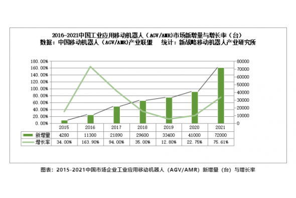 2021年中國市場企業(yè)整體銷售AGV/AMR72000臺,市場銷售額達到126億元。