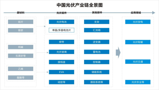 在2021年度近7500億的光伏投資規(guī)模中,單個(gè)投資規(guī)模在億元以上的光伏項(xiàng)目已超130個(gè),10億元以上的項(xiàng)目近100個(gè),100億元以上的項(xiàng)目約有25個(gè)。其中全產(chǎn)業(yè)鏈一體化項(xiàng)目投資規(guī)模近2000億,每個(gè)項(xiàng)目投資手筆動(dòng)不動(dòng)就是幾百億,電池和組件環(huán)節(jié)的投資擴(kuò)張有過之而不及,億元以上的項(xiàng)目超過60個(gè),約7個(gè)項(xiàng)目投資預(yù)算在100億元以上。2022上半年,光伏產(chǎn)能投資超過了6000億,特別是龍頭企業(yè)動(dòng)輒百億的投資(公告)頻頻出現(xiàn),跨界者持續(xù)涌入,產(chǎn)能投資還在提速。光伏產(chǎn)業(yè)的擴(kuò)產(chǎn)風(fēng)潮給設(shè)備廠商帶來(lái)了巨大的機(jī)遇,光伏產(chǎn)業(yè)鏈中,上游為原材料,主要包括硅片、銀漿、純堿、石英砂等;中游為光伏電池板及光伏組件生產(chǎn);下游為光伏的應(yīng)用領(lǐng)域,光伏主要用來(lái)發(fā)電,還可以代替燃料用來(lái)取暖等。