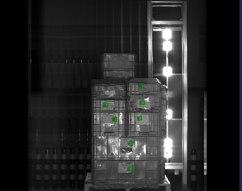 出入庫讀碼門通過在貨物兩側安裝相機,當托盤整體通過讀碼門時,每臺相機實時讀碼,并進行目標跟蹤。當貨物離開時,匯總讀到的條碼,同時將每臺讀碼相機的跟蹤信息進行匯總,實現(xiàn)碼垛整體全景拼圖顯示。融合先進的深度學習面單/物體定位算法,實現(xiàn)條碼和貨物的綁定,當出現(xiàn)未讀碼的包裹時,提示異常,引導進行人工補錄。