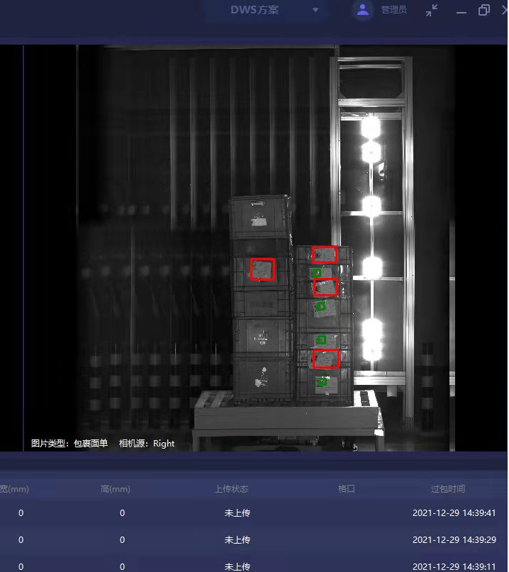 華??萍纪ㄟ^追蹤讀碼相機畫面內(nèi)貨物的移動,將所有相機采集的圖片進行標定、對比、融合,完整展示堆垛貨物讀碼情況。