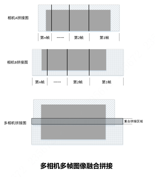 通過大景深相機融合先進拼圖算法, AGV在不同位置通過時,可精確計算不同相機之間的重合區(qū)域,進行準確的多相機拼接。