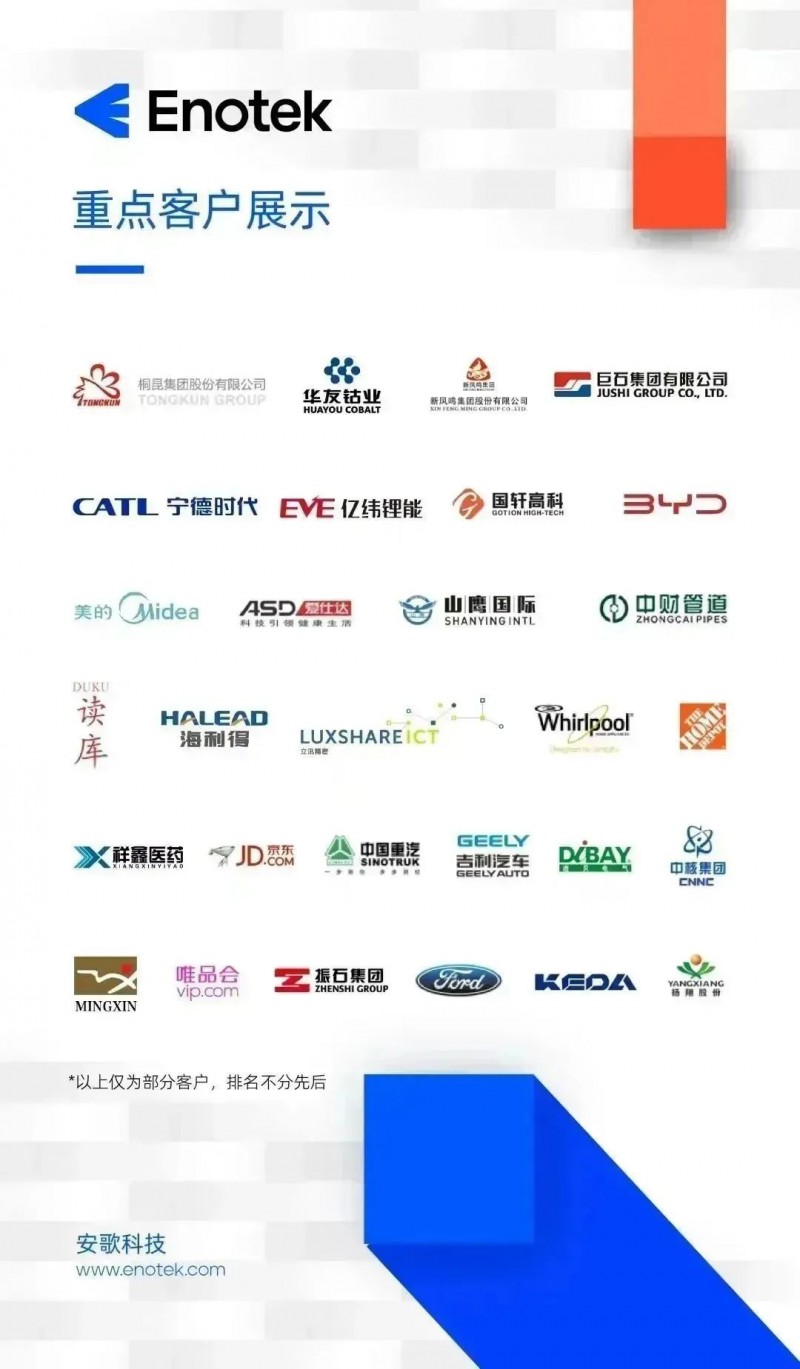 除此之外,安歌科技至今已為桐昆股份、中國巨石、中國重汽、國軒高科、比亞迪等化纖、玻纖、新能源、新材料、汽車零配件、造紙、電子電器、食品飲料等打造了100+案例,收獲了來自各領(lǐng)域頭部企業(yè)的認(rèn)可。