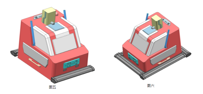 對(duì)于現(xiàn)有的四方形移動(dòng)部件(以AGV小車為例),一方面是將帶狀安全觸邊直接放置在前后兩側(cè)(見(jiàn)圖五),減免因撞擊帶來(lái)的傷害;更多地是利用多個(gè)帶狀安全觸邊組成一個(gè)閉環(huán)安全觸邊總成(見(jiàn)圖六)更好的減少傷害。