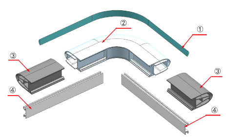 ①.導(dǎo)電條 ②.連接器  ③.本體  ④.型材