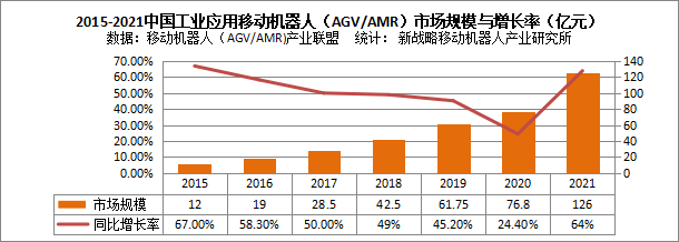 2022年,根據移動機器人(AGV/AMR)產業(yè)聯(lián)盟數據、新戰(zhàn)略移動機器人產業(yè)研究所初步統(tǒng)計,中國移動機器人市場規(guī)模增長預計超過40%。