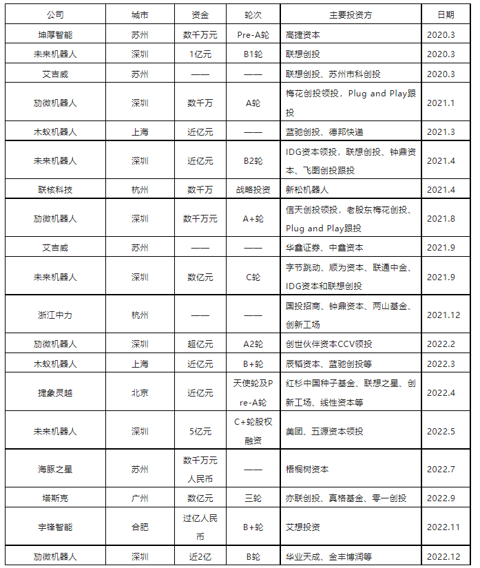 圖表:2020-2022國內(nèi)無人叉車市場融資情況(不完全統(tǒng)計)