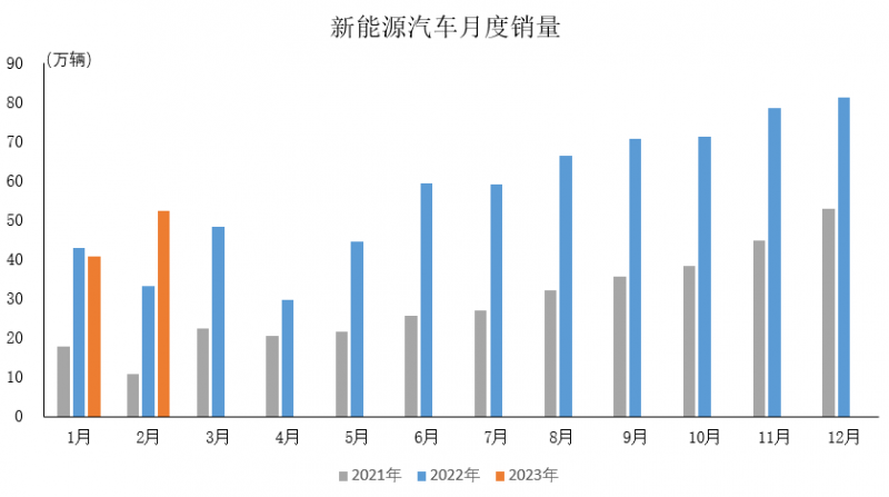 2023年1-2月,新能源汽車產(chǎn)銷分別完成97.7萬(wàn)輛和93.3萬(wàn)輛,同比分別增長(zhǎng)18.1%和20.8%,市場(chǎng)占有率達(dá)到25.7%。從汽車行業(yè)發(fā)展趨勢(shì)來(lái)看,新能源汽車的增長(zhǎng)速度未來(lái)會(huì)進(jìn)一步加快。