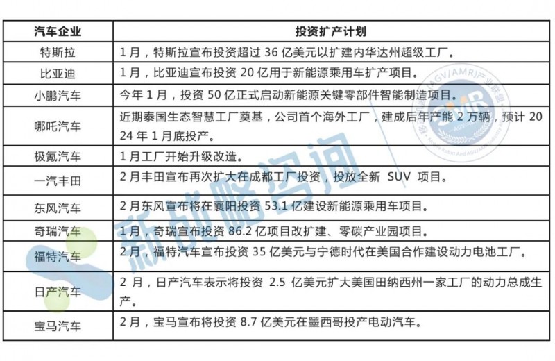 圖表:2023年部分汽車企業(yè)投資擴(kuò)產(chǎn)計(jì)劃