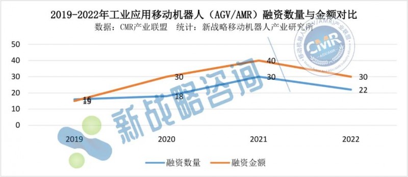 圖表:2019-2022年工業(yè)應用移動機器人(AGV/AMR)融資數(shù)量與金額對比