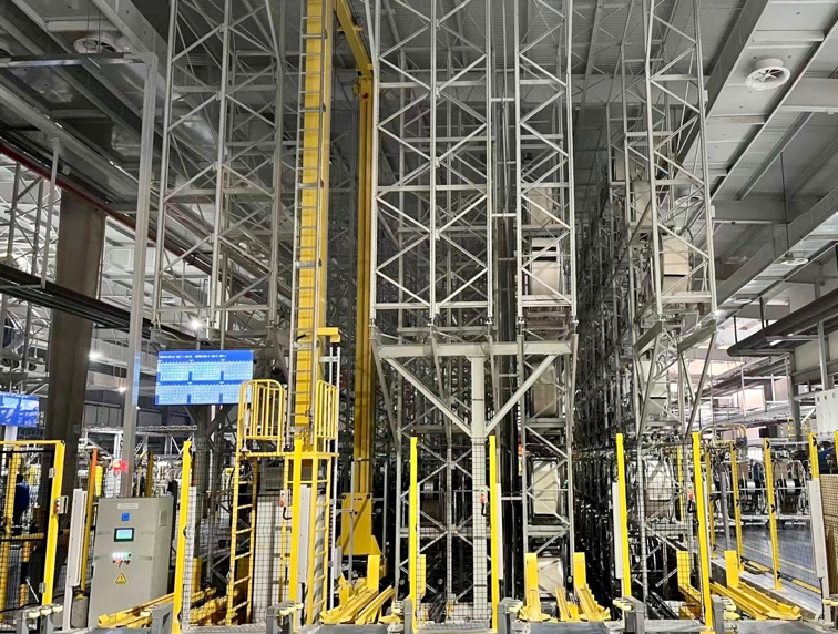 UQI優(yōu)奇的解決方案將各種半制品物料臺車從半制品加工設備處輸送至相應的緩存立庫,通過WMS系統(tǒng)分配庫位及次序,由堆垛機接駁進行入庫及出庫,再按需輸送到各個成型機處進行生產。從而在緩解廠區(qū)空間壓力的基礎上,減少半制品的等待時間,提高生產效率。