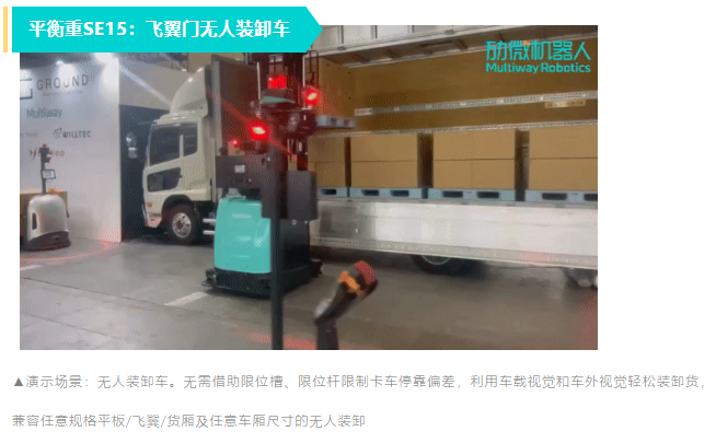 勱微機(jī)器人平衡重式無(wú)人叉車(chē)SE15也在本次展會(huì)中    亮相,該車(chē)型具備極強(qiáng)場(chǎng)景延展性,適用田、川多類(lèi)型托盤(pán),既可以滿足場(chǎng)內(nèi)物流堆高需求,又兼具有運(yùn)行速度快、爬坡能力好、載重極限高的優(yōu)勢(shì),輕松應(yīng)對(duì)高負(fù)載高舉升作業(yè)場(chǎng)景,兼容任意規(guī)格平板/飛翼/貨廂及任意車(chē)廂尺寸的無(wú)人裝卸,實(shí)現(xiàn)復(fù)雜場(chǎng)景以及高危環(huán)境下的復(fù)合應(yīng)用。