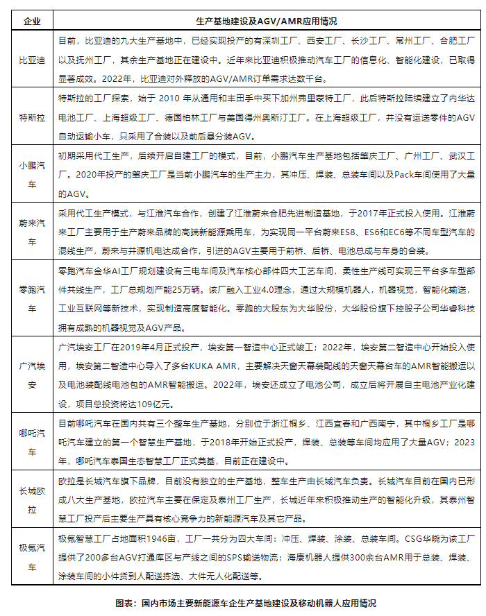 9大新能源車企內(nèi)部AGV/AMR應(yīng)用情況