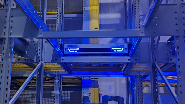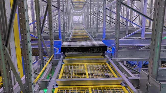 這個(gè)倉(cāng)庫(kù)是一個(gè)5℃冷藏庫(kù),主要存儲(chǔ)國(guó)內(nèi)某關(guān)鍵產(chǎn)業(yè)所需材料,要求恒溫恒濕。倉(cāng)庫(kù)高9米,為實(shí)現(xiàn)最大空間利用率,托盤(pán)四向穿梭車(簡(jiǎn)稱“四向車”)方案是最優(yōu)選擇。其中,曠視在軟件調(diào)度算法上的優(yōu)勢(shì),以及與松下信息很好的配合度,讓松下工廠最終選中了曠視智能托盤(pán)四向車系統(tǒng)。