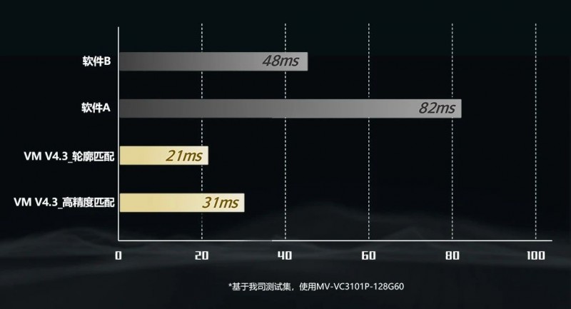 經(jīng)過(guò)優(yōu)化的匹配算法,相較于VM4.2及市面上主流視覺(jué)軟件的匹配效率有明顯優(yōu)勢(shì)。