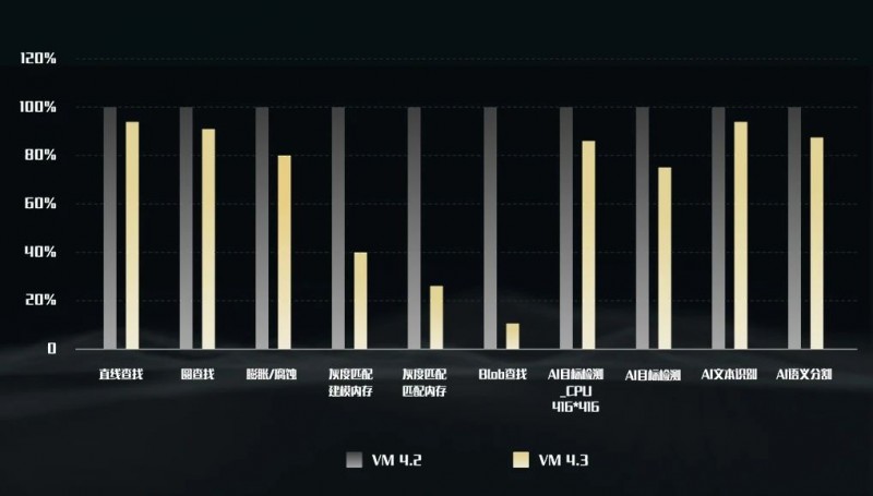 在提升算法效率的同時(shí),VM4.3改進(jìn)了底層算法和代碼實(shí)現(xiàn)設(shè)計(jì),減少資源冗余占用,顯著降低了對(duì)內(nèi)存的開(kāi)銷(xiāo),大部分算法內(nèi)存消耗相較于VM4.2都有明顯降低,使VM在復(fù)雜視覺(jué)應(yīng)用中更加從容。