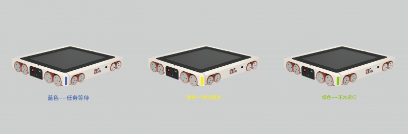 在車體四角設(shè)計(jì)狀態(tài)燈,黃色——異常;藍(lán)色——等待;綠色——正常,用戶第一時(shí)間可以通過警示燈顏色了解車體的狀態(tài),保障立體庫(kù)的穩(wěn)定運(yùn)行。