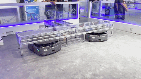 激光 SLAM 旋轉(zhuǎn)頂升搬運機器人 SJV-SW600 作為最具性價比的新款機器人,前后配備雙激光,定位精度可達 ±5mm,并支持頂升隨動功能?,F(xiàn)場三臺 SJV-SW600 通過 Roboshop Pro 完成車體部署,基于 RDS 實現(xiàn)多車統(tǒng)一調(diào)度,對 T 字形托盤進行完美協(xié)作搬運,三機同時頂升轉(zhuǎn)圈,盡顯絲滑流暢。
