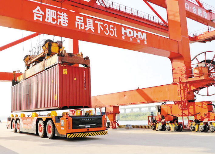 其中,合肥港綜合碼頭是南淝河港區(qū)最大的件雜貨和集裝箱裝卸碼頭,也是合肥港智能化水平最高的碼頭。配備3臺(tái)岸橋全部加裝自動(dòng)對(duì)位系統(tǒng),6臺(tái)場(chǎng)橋全部改造為全自動(dòng)場(chǎng)橋,同時(shí)配備了2臺(tái)國(guó)唐“鴻擎F01”IGV無人駕駛集卡車。2022年,合肥港綜合碼頭集裝箱吞吐量達(dá)42萬標(biāo)箱,2023年計(jì)劃吞吐量達(dá)45萬標(biāo)箱。