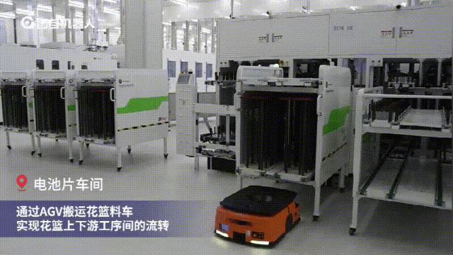 在電池片車間,潛伏頂升式AGV搬運(yùn)花籃料車來(lái)實(shí)現(xiàn)花籃上下游工序間的流轉(zhuǎn)。AGV采用激光SLAM高精度定位導(dǎo)航方式,配合國(guó)自智能糾偏算法,實(shí)現(xiàn)料車偏移±10cm,角度偏差±10°的情況下也能精準(zhǔn)搬運(yùn),確保轉(zhuǎn)運(yùn)高效安全。