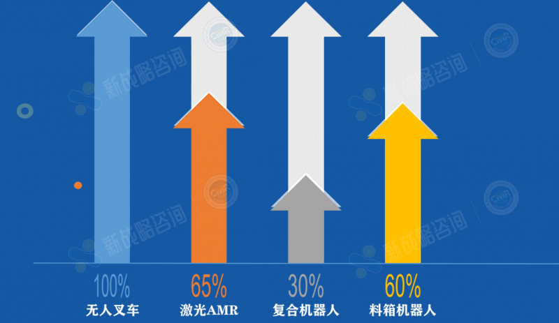 2023年,無(wú)人叉車(chē)、復(fù)合機(jī)器人、重載AGV等產(chǎn)品是移動(dòng)機(jī)器人行業(yè)的“熱門(mén)單品”,根據(jù)新戰(zhàn)略移動(dòng)機(jī)器人產(chǎn)業(yè)研究所初步測(cè)算,2023年無(wú)人叉車(chē)在所有細(xì)分品類(lèi)中增速第一。同時(shí),激光AMR產(chǎn)品也實(shí)現(xiàn)了快速增長(zhǎng),2023年已經(jīng)超過(guò)二維碼導(dǎo)航產(chǎn)品,成為移動(dòng)機(jī)器人第一大細(xì)分品類(lèi)。