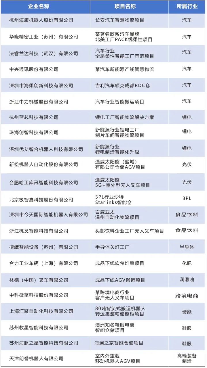 為了更好的展現(xiàn)當(dāng)前行業(yè)交付及時、影響力大、客戶價值凸顯的經(jīng)典案例和標(biāo)桿項(xiàng)目,推崇行業(yè)好口碑項(xiàng)目、保護(hù)行業(yè)發(fā)展路徑,移動機(jī)器人(AGV/AMR)產(chǎn)業(yè)聯(lián)盟特別征集和發(fā)布《2022-2023中國移動機(jī)器人(AGV/AMR)行業(yè)標(biāo)桿案例合集》。經(jīng)過前期征集與甄選,共有22個案例入選《2022-2023中國移動機(jī)器人(AGV/AMR)行業(yè)標(biāo)桿案例合集》。涵蓋汽車、鋰電、光伏、3PL、半導(dǎo)體等多個行業(yè)。
