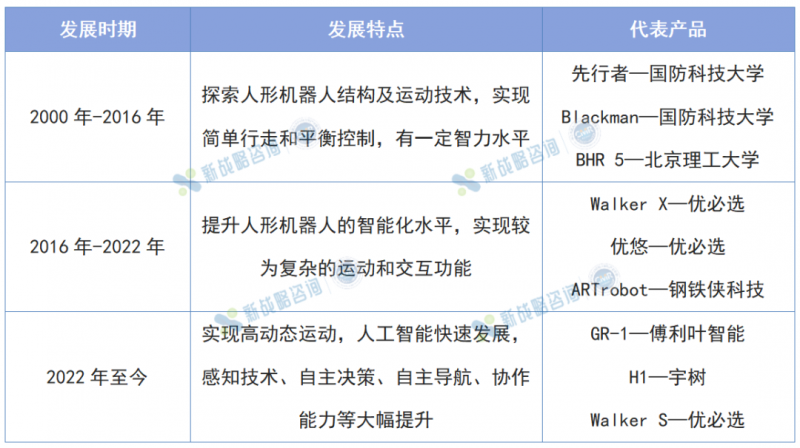 相比日美等發(fā)達(dá)國家,中國加入人形機器人賽道較晚。2000年,國防科技大學(xué)成功研制出中國第一臺兩足步行人形機器人“先行者”。“先行者”可以模擬人類行走,且具備一定的語言功能。此后,國內(nèi)的高校和科研機構(gòu)不斷進(jìn)行相關(guān)技術(shù)探索,在運動控制、感知識別和智能化方面取得了一些進(jìn)展。2016年,優(yōu)必選開始研發(fā)大型人形機器人,并于2018年推出Walker第一代。Walker是中國首臺可商業(yè)化人形雙足機器人,在五年內(nèi)歷經(jīng)四次迭代,具有高度的運動靈活性和智能交互能力。