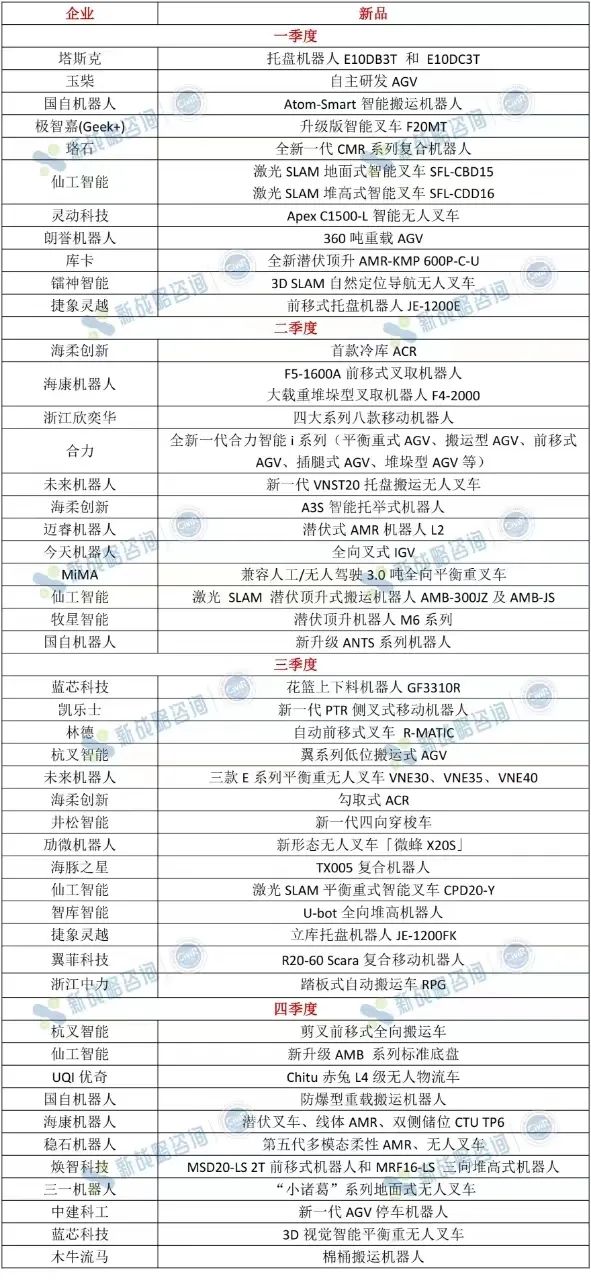 表:2023年AGV/AMR行業(yè)新產(chǎn)品(根據(jù)公開(kāi)信息整理,如有未完善之處,請(qǐng)指正!)
