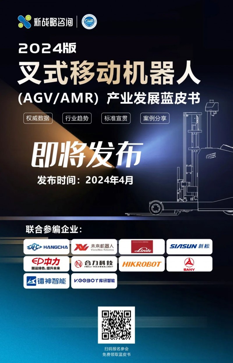 2024年,為了更好地探析當(dāng)前無(wú)人叉車市場(chǎng)最新發(fā)展情況及趨勢(shì),推動(dòng)無(wú)人叉車深入應(yīng)用,彰顯行業(yè)品牌力量,由CMR產(chǎn)業(yè)聯(lián)盟主編,杭叉智能、未來(lái)機(jī)器人、林德、新松、浙江中力、合力、海康機(jī)器人、三一機(jī)器人、鐳神智能、哈工庫(kù)訊等企業(yè)聯(lián)合參編的《叉式移動(dòng)機(jī)器人(AGV/AMR)產(chǎn)業(yè)發(fā)展藍(lán)皮書(shū)(2024版)》將在4月舉辦“第二屆全球無(wú)人叉車峰會(huì)”上重磅發(fā)布,敬請(qǐng)期待!