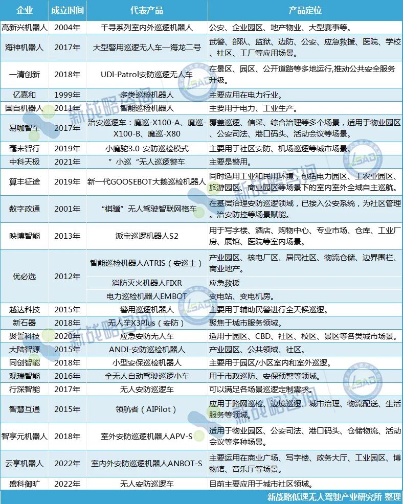作為行業(yè)發(fā)展新亮點的安防巡檢機器人,一直是機器人企業(yè)和傳統(tǒng)安防企業(yè)重點布局的領域;近兩年,“跨場景入局”的行業(yè)發(fā)展特點初現,國內一些自動駕駛公司也著手開始跨場景布局無人安防巡檢領域,特別是在無人配送領域已取得成就企業(yè),如行深智能、毫末智行、易咖智車、新石器等。