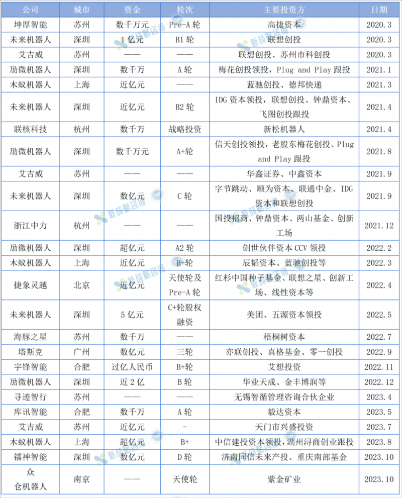 根據(jù)CMR產(chǎn)業(yè)聯(lián)盟數(shù)據(jù),新戰(zhàn)略移動機(jī)器人產(chǎn)業(yè)研究所統(tǒng)計,2020-2023年,國內(nèi)專注于無人叉車開發(fā)的企業(yè)共完成25起融資,融資總額超20億元人民幣。
