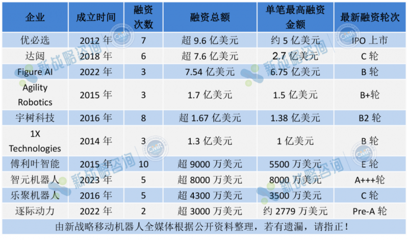 圖表:歷年來全球人形機(jī)器人企業(yè)融資總額TOP10