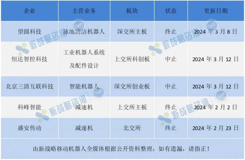 據(jù)不完全統(tǒng)計(jì),截止3月26日,2024年一季度已有5家機(jī)器人企業(yè)及產(chǎn)業(yè)鏈企業(yè)中(終)止IPO。在這股IPO冷空氣下,機(jī)器人企業(yè)該如何治愈IPO焦慮呢?
