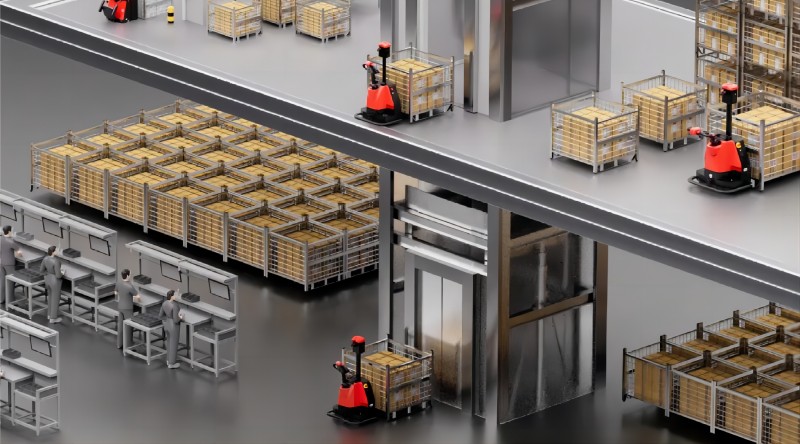 及時跨樓層補充產(chǎn)線物料,同時將產(chǎn)線空料框送回倉庫