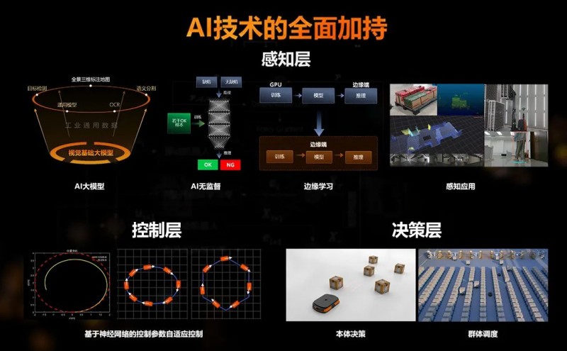 “在控制層面,我們基于模型的最優(yōu)控制,運(yùn)行規(guī)劃消除偏差,通過(guò)迭代學(xué)習(xí),使機(jī)器人逐漸適應(yīng)各種環(huán)境,未來(lái)其適應(yīng)能力會(huì)越來(lái)越強(qiáng),可以提升控制的自主性和魯棒性。而在當(dāng)前的決策層面,我們基于AI路徑規(guī)劃能力,通過(guò)大量規(guī)劃路徑數(shù)據(jù)的學(xué)習(xí),使網(wǎng)絡(luò)具備專(zhuān)家級(jí)的路徑規(guī)劃能力。同時(shí)利用網(wǎng)絡(luò)推理并進(jìn)行預(yù)算,實(shí)現(xiàn)半徑毫秒級(jí)的快速路程規(guī)劃。”賈永華表示,在AI的加持下,極大地增強(qiáng)了智能系統(tǒng)生產(chǎn)能力,這種能力不斷滲透到各個(gè)場(chǎng)景、業(yè)務(wù)和行業(yè),可以有效地將AI技術(shù)真正轉(zhuǎn)變?yōu)樯a(chǎn)力。