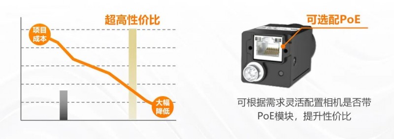 通過(guò)精簡(jiǎn)相機(jī)資源、選配POE模塊,保留“恰到好處”的功能,在滿足廣泛視覺(jué)檢測(cè)與分析應(yīng)用需求的同時(shí),還提供了超高性價(jià)比。