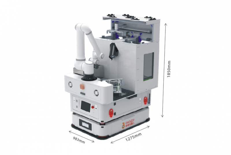 歐鎧復合機器人是基于AGV搭載多軸機械臂組成,結合ERP/MES等信息系統(tǒng)的指令,復合機器人與信息系統(tǒng)結合運作。調(diào)度人員通過系統(tǒng),向復合型機器人下達物料運輸、上下料的指令,車間智能化由此形成。