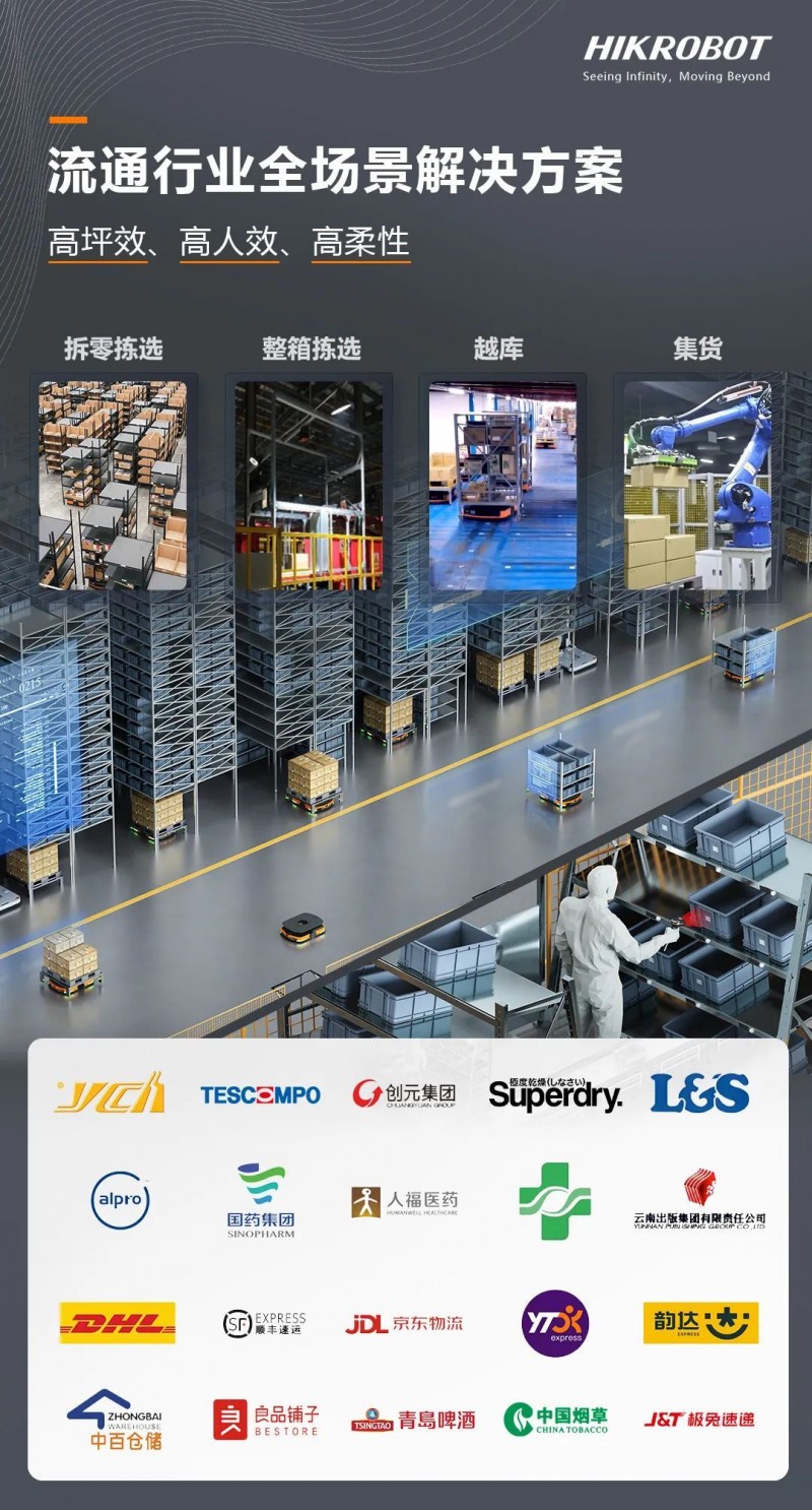 針對流通行業(yè)的業(yè)務(wù)波動量大、效率要求高、業(yè)務(wù)容錯率低、庫容要求高等核心難題,結(jié)合豐富的產(chǎn)品線和解決方案、智能算法等全場景規(guī)劃能力,海康機器人為行業(yè)伙伴打造了高坪效、高人效、高柔性的解決方案,覆蓋電商零售、鞋服、煙草酒水、商超、圖書出版、3PL、醫(yī)藥等細分行業(yè)。