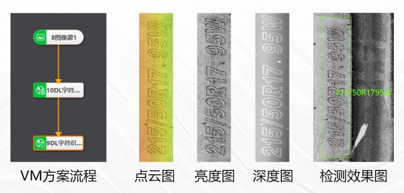 采用3D激光輪廓傳感器進(jìn)行圖像采集,結(jié)合??禉C(jī)器人AI訓(xùn)練平臺(tái),進(jìn)行字符識(shí)別,可準(zhǔn)確識(shí)別輪胎所有DOT碼。