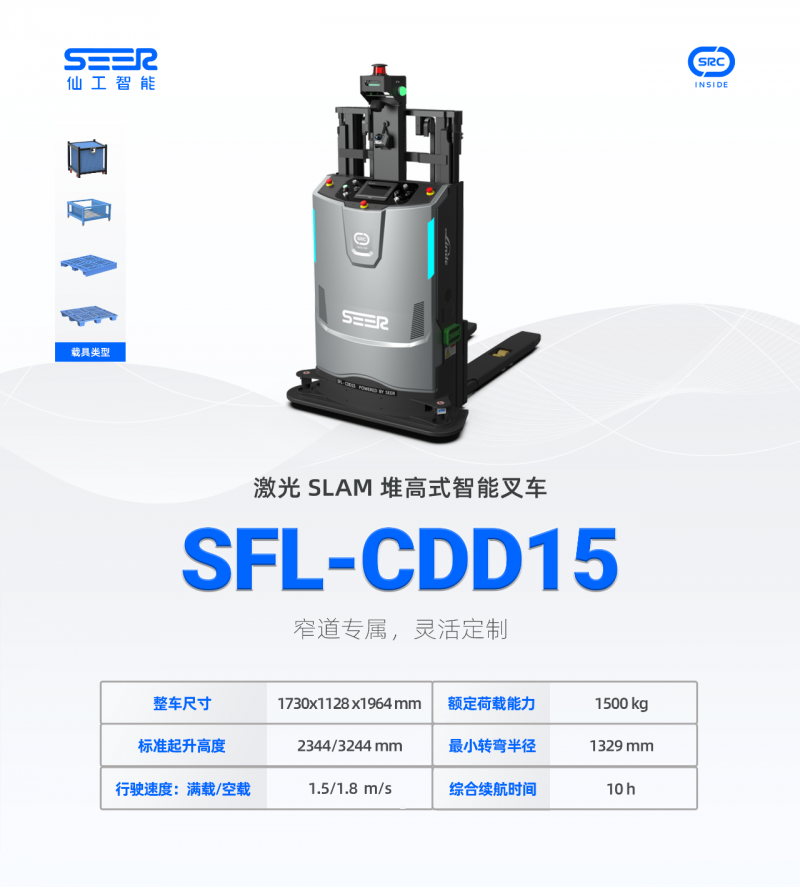 SFL-CDD15 基于林德車體打造,內(nèi)置仙工智能 SRC 控制器,產(chǎn)品競(jìng)爭(zhēng)力 Next Level。