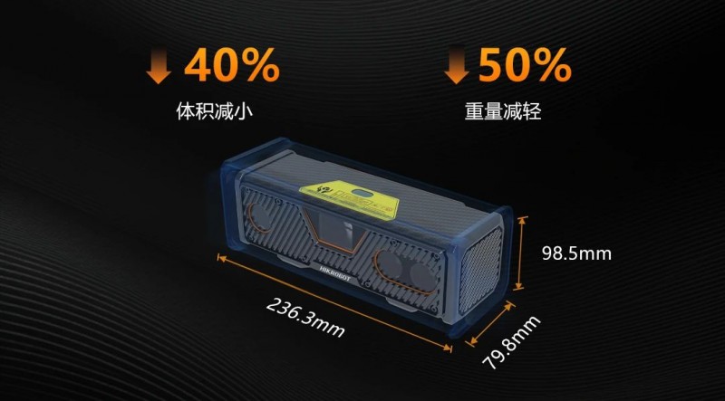 新一代激光振鏡立體相機(jī)全系列采用輕量化設(shè)計,以小視野高精度的DLS300P為例,相機(jī)的體積減小約40%,重量減輕約50%。在臂載式安裝(Eye in Hand)應(yīng)用時,能夠有效減輕機(jī)械臂末端負(fù)載,提升系統(tǒng)可達(dá)性,滿足更廣泛的應(yīng)用場景。
