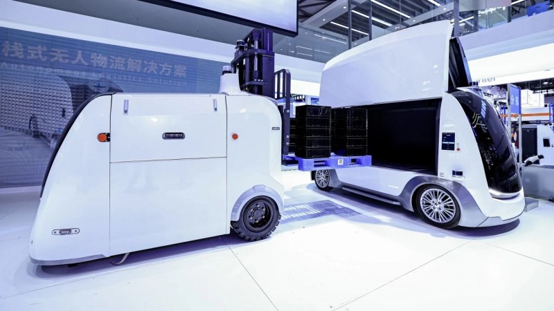 重載無人叉車F3000與L4級(jí)無人物流車Chitu赤兔協(xié)同工作
